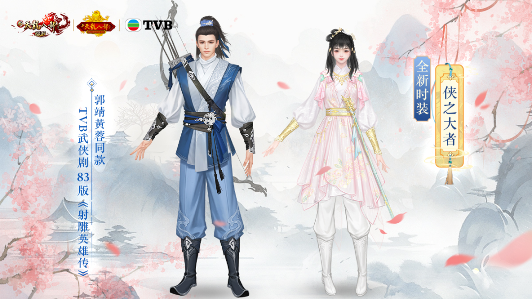 “侠之大者,为国为民”,TVB经典武侠剧系列——83版《射雕英雄传》联动外观【侠之大者】与双人动作【儿女情长】正式上线,还原剧中“靖哥哥”与“蓉儿”的经典造型,让我们回到那个万人空巷的童年时代。