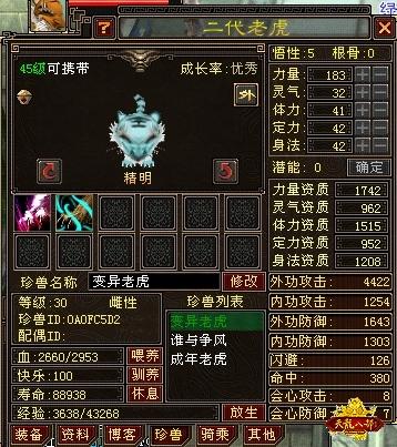 综述:在你打到1700以上的1代老虎时千万别认为很多2代的1800多甚至1900的比你的好,其实在攻击上,1代老虎很肯定强于2代的比1代高1、200资质的老虎,如果成长率为优秀或者以上的话就更不用说了,那肯定是极品中的极品了!
