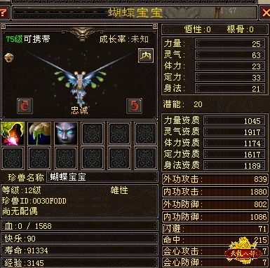 将可携带等级55级及55级以上的成年珍兽还童,可以进化成相应等级的蝴蝶宝宝。