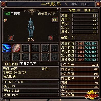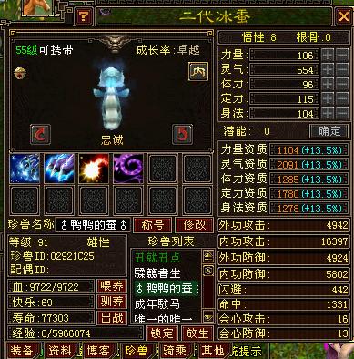 怎莫样,还算极品吧。多数人之所以不能合成向上面一样的宠,是由于方法上的错误。但还是要提醒大家,在天龙中珍兽的合成主要还是看运气。所谓的方法,只是相对的捷径,但并不能保证绝对的成功。