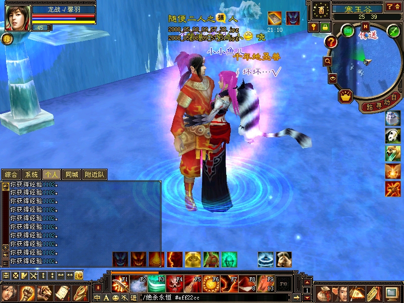 看着老婆的号大起来了,我的心里也痒痒的,于是乎,我在她的区也练了个号,有30级的少林,10级的天山,还有现在号,46的明教。给老婆买了身衣服,我自己也想要,哀求了半天,老婆说:“你上我的号,去刷日记吧”;老婆骑鸵鸟(鸵鸟是她自己点盒子点出来的,想给她买个翅膀,她非要等鸵鸟有效期过了再买),我骑路行雕,哀求要只最便宜的熊,老婆给了一个字:“不行!”好说歹说,求了一晚上,老婆说:“明天你做饭就让你买!”赶紧屁颠屁颠的去冲元宝,做饭?明天还不知道谁做呢