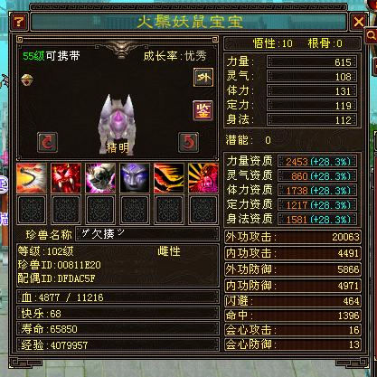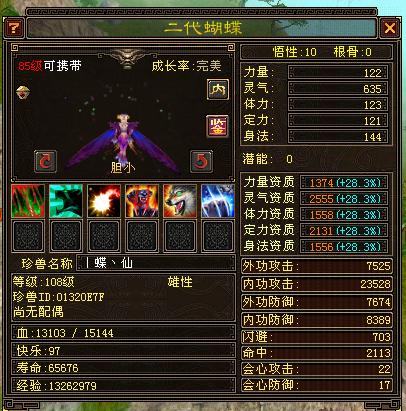 2.内功型门派的PK类BB,性格要求胆小,内功型,技能书要求是法魂,单法,高痛击,高连击,高级破绽,因为峨眉有虚弱,所以就打破绽或者打摔拌,由于峨眉没有加速打架会很头疼的~还有2个手动技能,峨眉是冰攻击和玄攻击,可以按照自己的选择,当然也有人用是毒群,还有个高级神佑,保命用的~