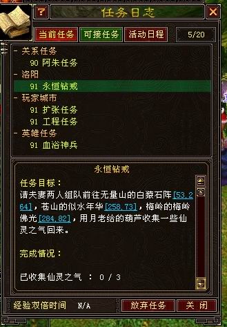 3、做任务的时候必须是夫妻两人组队,跟千寻任务相类似。