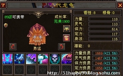 龙龟宝宝,可能是目前江湖中最火的体力宝宝了吧,带着一个冒着仙气的庞大的龙龟,看起来就牛X,又怎能不让敌人胆寒呢。不过要带这样的宝宝,可要经过一翻艰苦的战斗才有可能得到,那就是在圣兽山打败它!