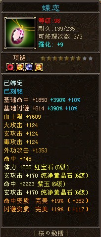 ▕桜の飛樰▏被称为冥界第一少林可以说是当之无愧,全身除了帽子、神器、暗器以外,全部手工都是他自己做的,血量30万,属性攻击3000左右,减抗350,单挑无敌,下面是他的人物属性图