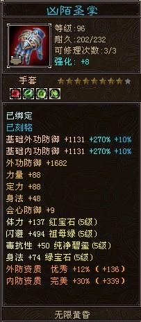黄昏: 我听过 战神套 和100套会重叠属性 以我看来我这身装备是不准备换了