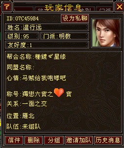 远:我们认识的时候级数都差不多,所以就一起升级。有时候有兄弟有什么麻烦事,我们就一起出动。比如:有一次我做神器还差1000个怪,原本以为兄弟们会推辞,最后没想到所有的兄弟都来带我刷怪,感动死我了,最后一个符是大哥自掏腰包给我买的。这样的事情还有很多很多。