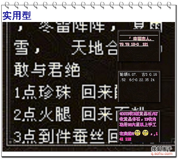 嗯,言归正传。苦思冥想勒好久喔好久,不知道应该写点什么作为第一篇入门级别作品。于是,带上一小堆垃圾开始摆摊苦想。坐在地上看着洛阳来来往往的人们,便一个个点开他们的资料来瞄一下下,不看还好,一看...嘻嘻,发现勒一个很好玩的事情。玩家们的个人说明真是五花八门,有的伤感有的让人忍俊不禁。于是阿,熊猫一个个的点阿点,把玩家们的个人说明都截图下来好好研究勒一番,还小小的归类勒。接下来,熊猫把这些截图发出来晒一晒,大家的个人说明是不是也是其中的一种呢?或者你的比这些还有创意?