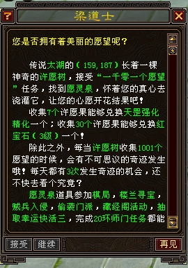 封测玩家无一不乘兴而来,失意而归。这和封测的一些特点有关,比如日期限制,每日都做完恐怕都换不到半个三级宝石。凑齐7个“许愿果”能够兑换绑定的天罡强化精华一个,攒够30个“许愿果”能够兑换3级红宝石一颗。 换言之,一颗3级宝石要150个愿灵泉且最少需要30天,恕我直言,游戏策划在这个任务设计上不够细腻,兑换物品也太单调了些。不知以后能否改成一天许愿两次。