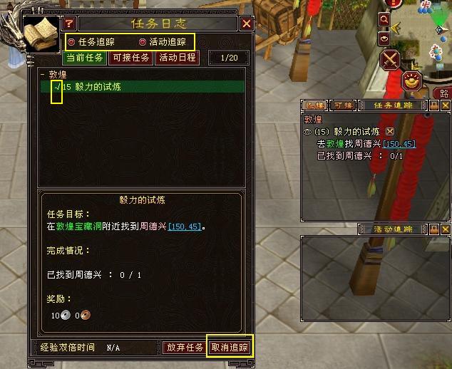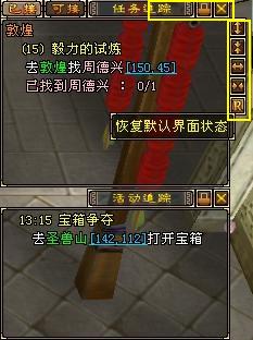 第一次登陆新龙门客栈内测服,界面上最明显的变动就是位于小地图下方的“任务追踪”和“活动追踪”列表。这两个列表均支持“拖动位置”、“锁定位置”及“关闭”操作。此外,假如将鼠标停在列表框的右边缘,还能看到隐藏的类似于聊天窗口框的“调整尺寸”工具条。(如下图所示)