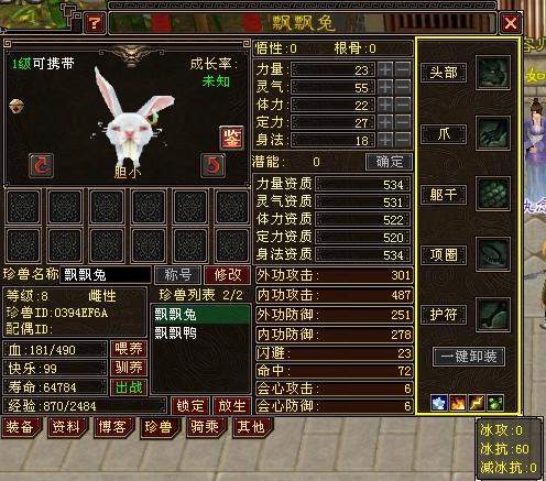 五、珍兽装备、抗性、一键卸装
