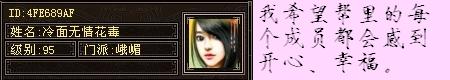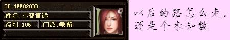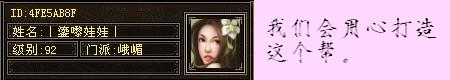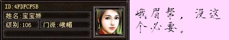 宝宝娇:我想如果想把“全峨眉”帮派建好的话,应该招集本区峨眉中的“尖子人物”,而且RP还得非常好的。