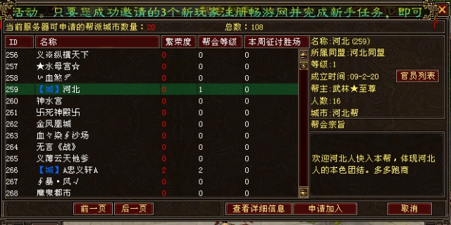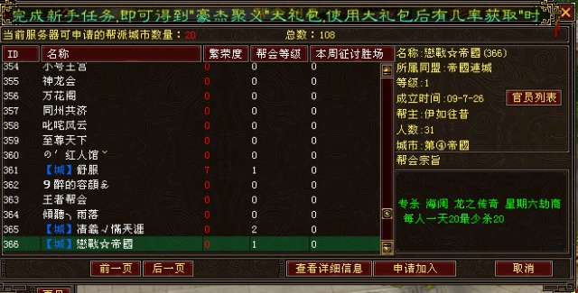 第一种;力图左右全区的局势,有能力组织大规模战斗,有实力争夺全区霸主的帮派,以战争与征服为乐 的帮派宗旨,