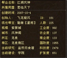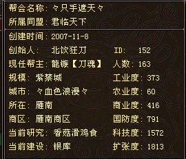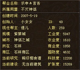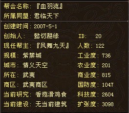 天下大势,合久必分,分久必合。由示申ぁ言舌、『血羽流』、【东北雄霸】组成的“不灭神话”已成为过去,如今只剩下示申ぁ言舌继续为“不灭神话”的传奇而奋斗。客观地说,示申ぁ言舌的实力确实很强,几乎都是人民币玩家,帮主煜儿119级天龙装备玄昊配战神全6石头,副帮主玉树临风119级明教装备手工配玄昊全6石头,还有其他成员也都是各门派的顶级高手。帮会总共259人,每天在线人数平均60人。目前没有任何一个帮可以与之抗衡。但是,凤凰古镇攻城战是以同盟的形式作战,所谓众人拾柴火焰高,这次示申ぁ言舌会夺得最后的荣誉吗?
