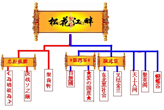 松花江畔的现在的局势比较混乱,但是仍然可以将大部分非中立帮派大体分为上图所示的两个阵容。