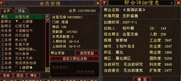 为所欲为作为一个老牌强棒,帮派内部非常团结,最高同时在线人数高达115人。战斗力可想而知: