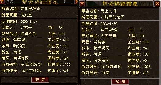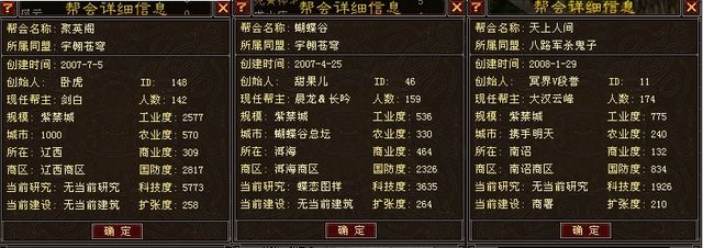 ps:在资料收集过程中,小记极力寻找本区战斗力较强的同盟,但是由于战局变化速度较快,而且本区情况特殊,战斗力较强的帮派各个势均力敌,未能形成相对稳固的联盟, 所以始终无法揣测未来的整体变化趋势,仅仅将近几天收集到的最新资料整理出来,与所有松花江畔的盟友共勉。