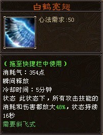 麻烦改成放大所有伤害(包括平打)--就是在没有白鹤的情况下伤害是5000,开了白鹤就应该是5000*1.48,这是武当的特色如果一个攻击型门派没有自己的放大技能我觉得不能称之为特色。