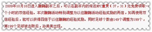 蹴鞠,一直以来都是倍受广大玩家喜爱的活动之一,轻松获得高经验,稳拿的神符都让大家热衷此项运动!可惜149个足球让大家总是没那么过瘾,现在足球增加为199个,嘿嘿,经验哗啦啦的上涨……有宝宝要带的,要冲级的,要经验修炼的可别错过喽!还有1个小时免费双领取,4倍经验的蹴鞠,你愿意错过么??