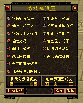 这里非聊天模式一定要选,下面会说到。还有提一下锁定快捷栏,就是你放的技能用鼠标左键也不会拖走。应该会有用的。