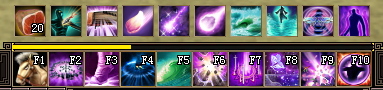 技能栏上面是数字键,在你非聊天的模式下,按下直接就出来了。OK,非聊天模式下呢,你按R键就会自动选择目标了。然后数字键4放你门派第一本第一个技能(此技能没冷却,不费气),而且4和R是非常好按的(如果你的键盘不是外星来的话应该是这样了)。