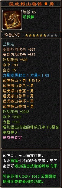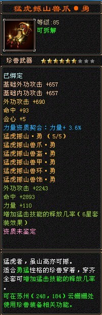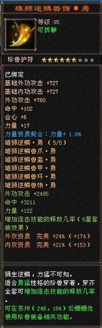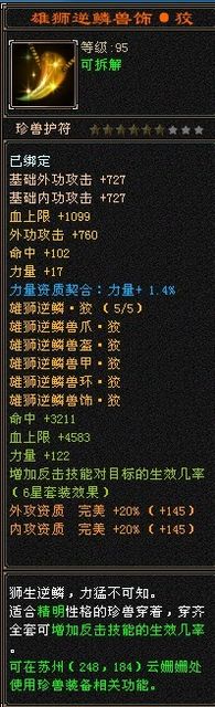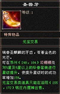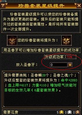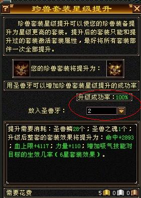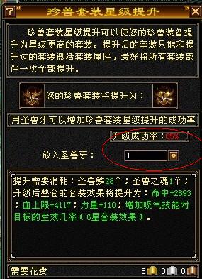 有此我们可以看见,圣兽牙即使不放也是可以升级的,但是只有75%的几率,为了不浪费好不容易刷到的圣兽鳞,我们还是乖乖的用2个圣兽牙去升级吧。