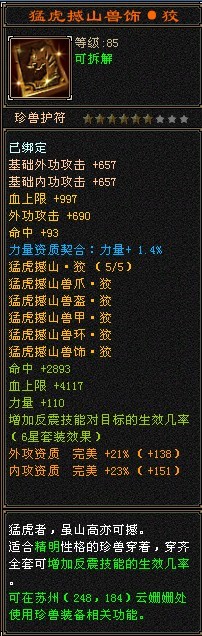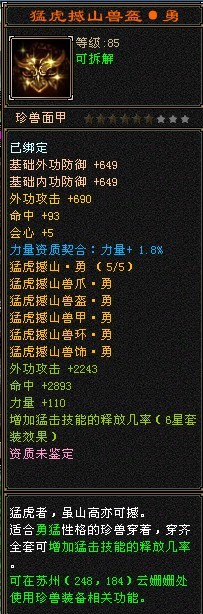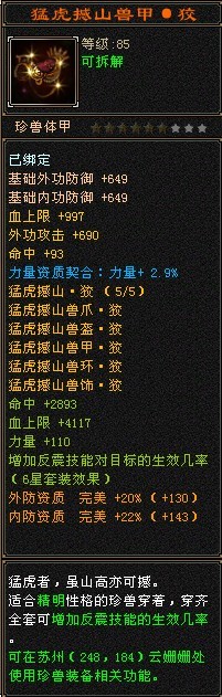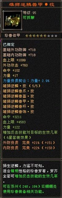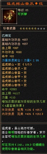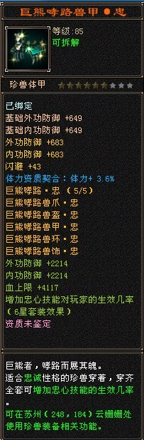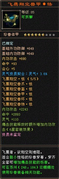 下面我们来看看部分套装升级以后的效果,由于点墨没有杀星,所以75级套装是空白的,而且点墨的宝宝都只有20级,所以以下截图都是来自世外龙园中玩家珍兽的截图,只是部分套装,并不完全。先来看看部分85级6星套装的效果: