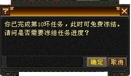 每完成整十环任务玩家可以获得一次免费冻结任务的机会,界时系统会弹出对话框,提问你“是否选择冻结任务?”