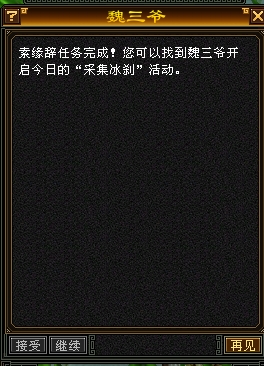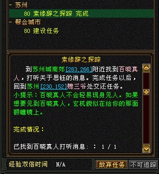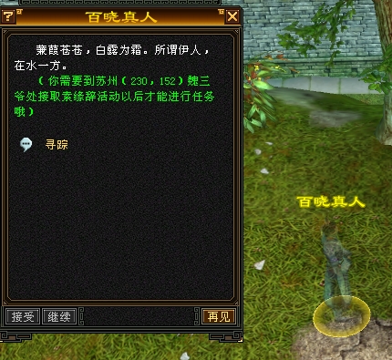 一开服就兴奋冲冲的去体验各个新东西了。做完了就给大家来晒晒了。估计大家也做了吧。先来素缘辞的,感谢师妹杨杨得意帮我弄图哈不见晓生哥原来得用照妖镜--小气的奖励然后还是对话任务。秒杀掉然后回去交任务,发现交不了。我又转回来了,原来得杀好几次真贱啊,那么欠扁杀图三次之后,他服了,这下