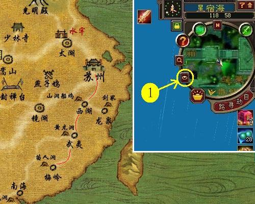 想要去较远的地点做任务却不知道怎样走。首先,点开世界地图(图1),找到你要去的地点,你会发现在每个地点都有通往其他地点的白色线条,这就说明这两个地点相通,从梅岭往回反推,经过武夷和西湖可以通往苏州,反之你从苏州出发,经过西湖、武夷就可以到达梅岭了。