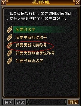 答:改名字以后,同样是到洛阳范移城,可以进行夫妻称号、师徒称号的更新。