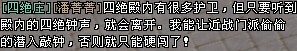 这个时候,如果派遣出一位近战门派的玩家,收去BB,找门口的NPC潘菁菁隐身后往地图里面跑,可以找到一口钟