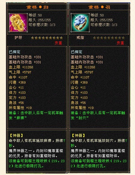 获得珍贵无比的上古神器:重楼•召、重楼•归!