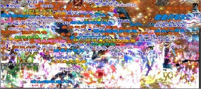 帮战过程中炫舞天下一直很得意也很自信,一直刷着喇叭骂结义门的人是垃圾。还骂他们说他们当乌龟不敢与他们一战。其实这些人在刷喇叭的时候,结义门虎狼军团的精锐已经部署到他们身后。在结义门虎狼军团前后夹攻的攻势下,炫舞的全6NB号也只能乖乖的躺在地上,看着这些被自己骂垃圾的人从自己的尸体上踩过去。结义门的义举也赢得了全区玩家的响应,很多其他的玩家也过来围观,有的人还下黑手。