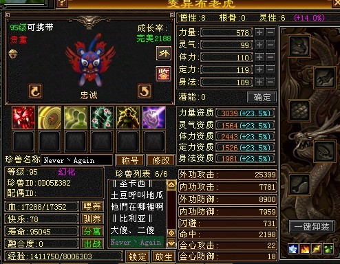 同资质的外功BB中呆呆牛、傀儡狼、布老虎的体力身法资质都还不错哦