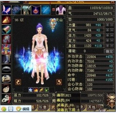 这个号是双属性的号,为什么打造双属性呢,是了为了加强平砍的输出,一般满四属性的天山号冰攻在1700左右,极品的有2000多的,当初想就弄冰的,但算来算去,以自已的能力也就只能上到1700左右了,但是后来觉得手工装备可以带多属性,就弄了全是加毒攻和冰攻的戒和付,只有项链没有加,试了下效果,在打飘渺那个土地公的时候,碰到免外攻和只受毒攻击的时候,原来的伤害多了3000,这下知道天山其它属性也是有加成的,然后我又弄了69的减抗,原来打怪是23000左右,现在变成27000左右,打人原来的3500-4000变成4400-5200。