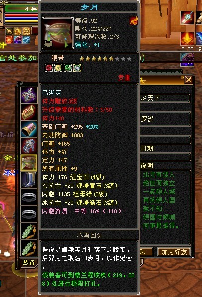 他真的去做了—他带上了一群低宝石的朋友,全队竟然没有一颗5级宝石;对于他自己,全三不满!只是他真的过了,虽然他们用了近一个小时,可是这却是一个具有跨时代意义的事件;从此以后他带领无数个全三不满的玩家去过大飘,甚有飘渺附近的玩家私聊:这装备也可以过大飘?