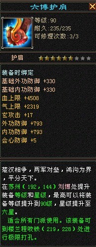 90六博护肩,血量无疑是最吸引人的地方,比较适合体力成长较低的武当使用。