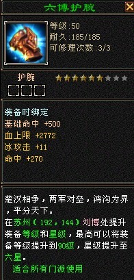 但是也可以大概推断出90护腕的属性,应该是多内攻和外功(因为是“适合所有门派使用”)