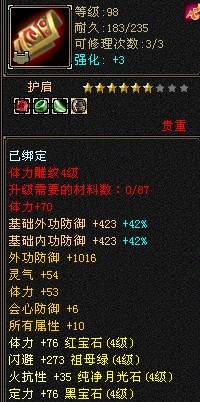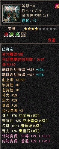 唯一就是装备必须带体。有些人问我,为什么我装备没他们好,血却比他们多那么多。