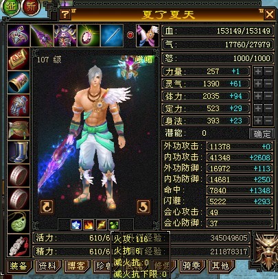 被测试号107EM,属性图如图,武魂合成7级,自身107级,风相