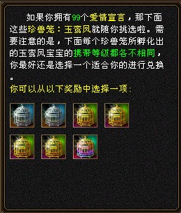 ②许愿获得爱情宣言,可兑换玉鸾凤。