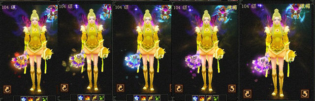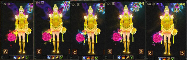 小鱼很贪心,哈哈,领了很多花束,每种都镶嵌了5种石头,绿晶石真的和花束不应景,小鱼直接舍弃了。下面的效果是3级石头的镶嵌效果,大家看看吧。对应的顺序是:红晶,黄晶,蓝晶,猫眼,紫玉