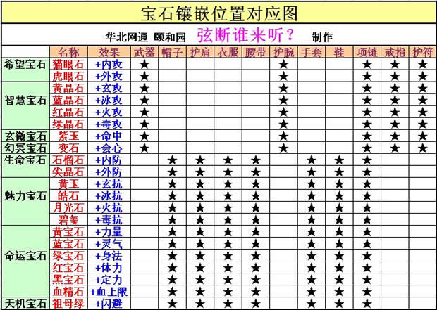 武器:猫眼石(+内攻)、黄晶石(+玄攻)、紫玉(+命中)