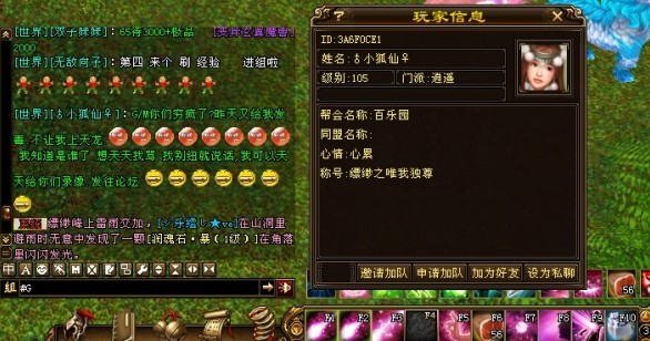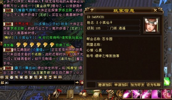 此人名为小狐仙,105满四火逍遥,附带N多90、100级左右的小号。