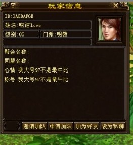 帮会:无,长期游民,因为声明狼藉,没帮收他