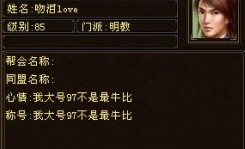 玄慈区头号骗子选手——泪吻love,85级明教,无帮无派无装备,职业骗子号。