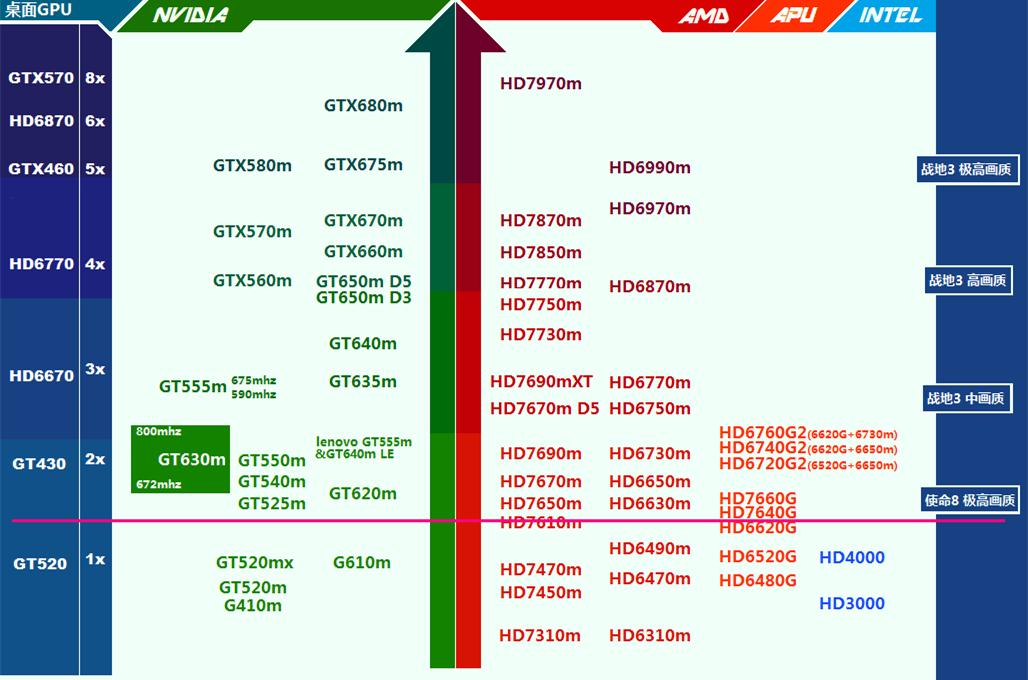 搜狗 说吧)OL,换句话说,就玩天龙来说,刚刚位于粉线之上的显卡,和远远超过粉线的显卡,效果是一样的。如果还卡,就是游戏本身的问题,再高的显卡也没用。