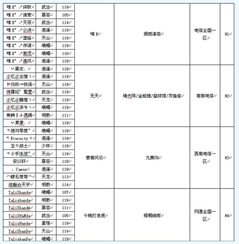H组之中,烟雨清荷服务器两大出线队伍之一的唯E战队、力压辣椒、老魔、笑我狂等强队昂首出线的无天战队、顶级峨眉绝对零度领衔的豪情风云战队、又一支“今晚打老虎,由几大极限属性高手组成的亚历山大战队。