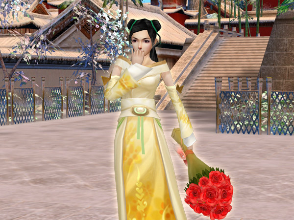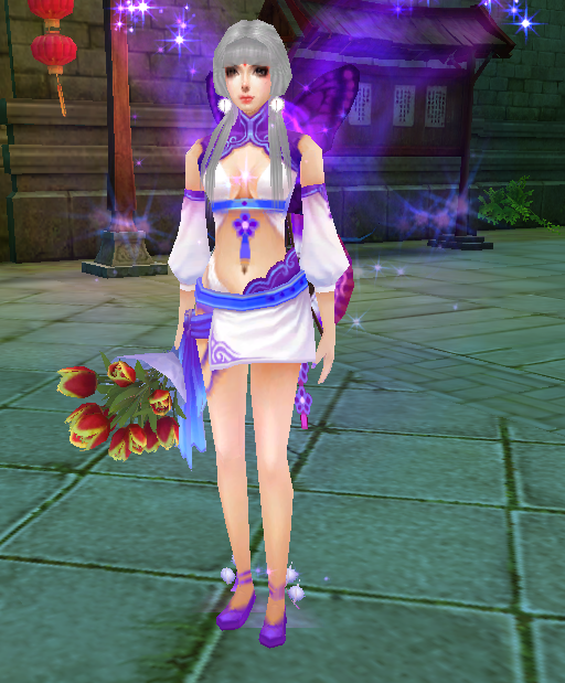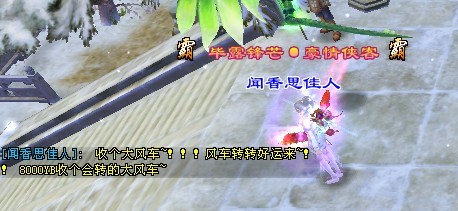 由于男逍遥拿扇子能更好展示效果的优势,作为模特当仁不让。这是天龙早期盛行的一款“花瓶武器”,当然,早在神器方兴未艾之际,很多环、扇类玩家也会乐此不疲地以此作为武器。造型精美的宫扇一度成为女玩家们的掌中玩物,搭配不同石头的光效,大有小家碧玉、大家闺秀的味道。盛产于长白山、银铠雪原的扇子出产量大、价格低廉,成为“花瓶武器”族们入门必备之物。